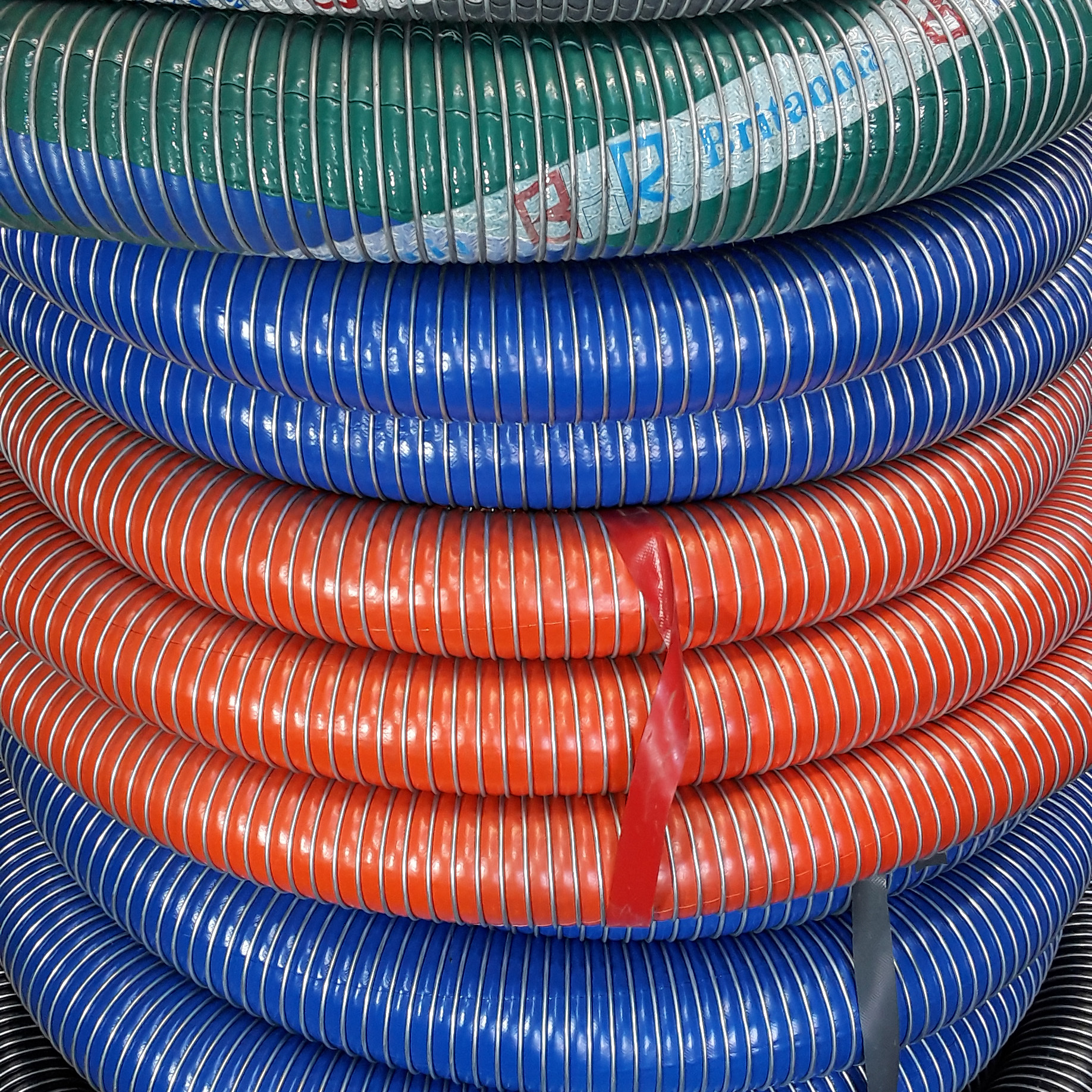 These are hoses that have an internal and external metal helix which sandwich a range of different sheet polymers between them to form a strong and very flexible hose suitable for many products.